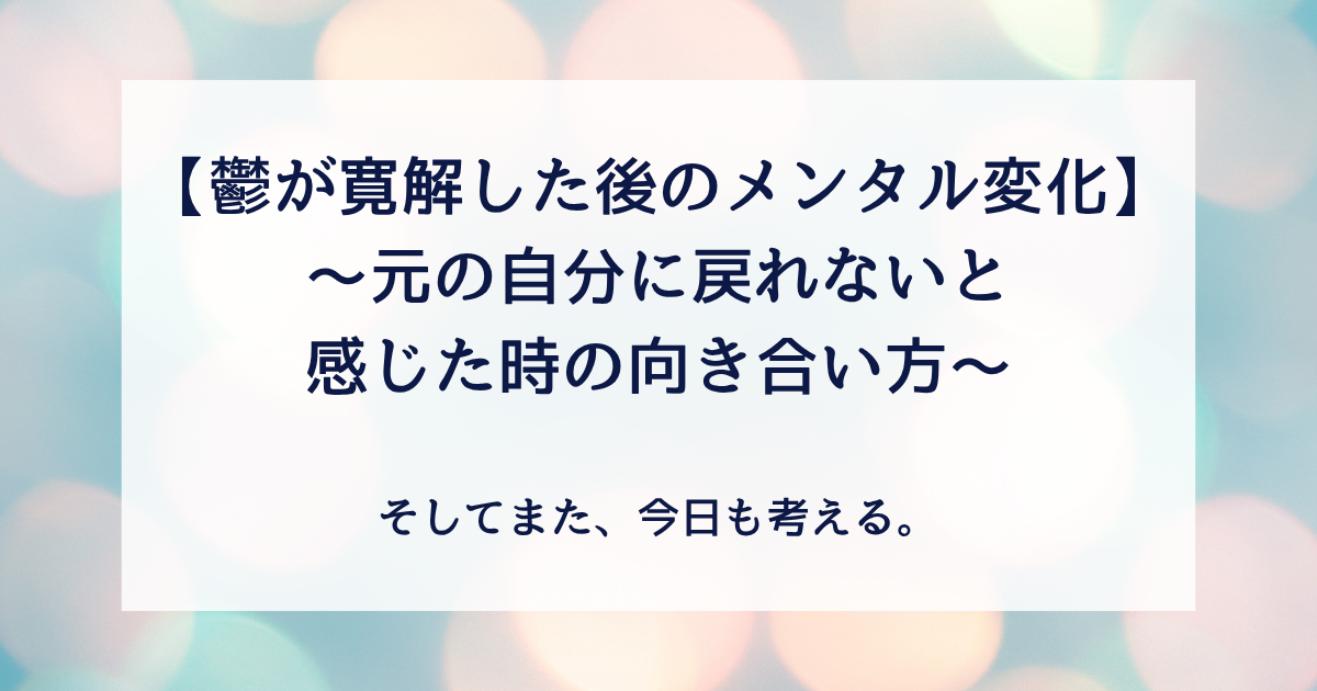鬱が寛解した後も、以前の自分と同じようにはいかないと感じる場面は少なくありません。