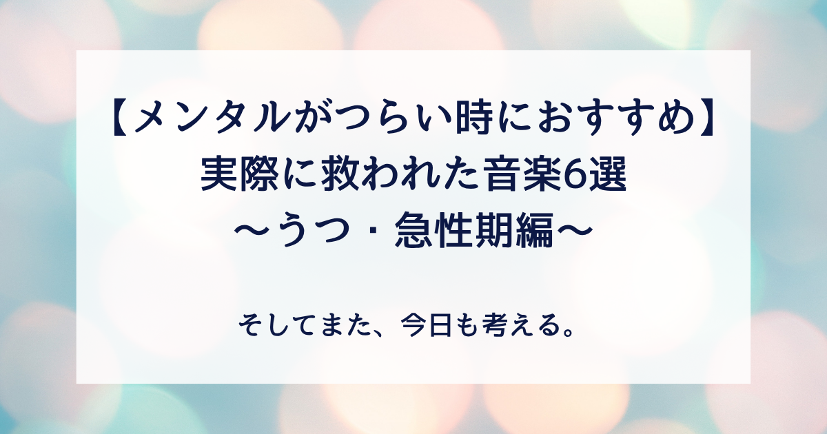 以上、辛い時にこそ聞いてほしい、鬱でも聞ける音楽でした。